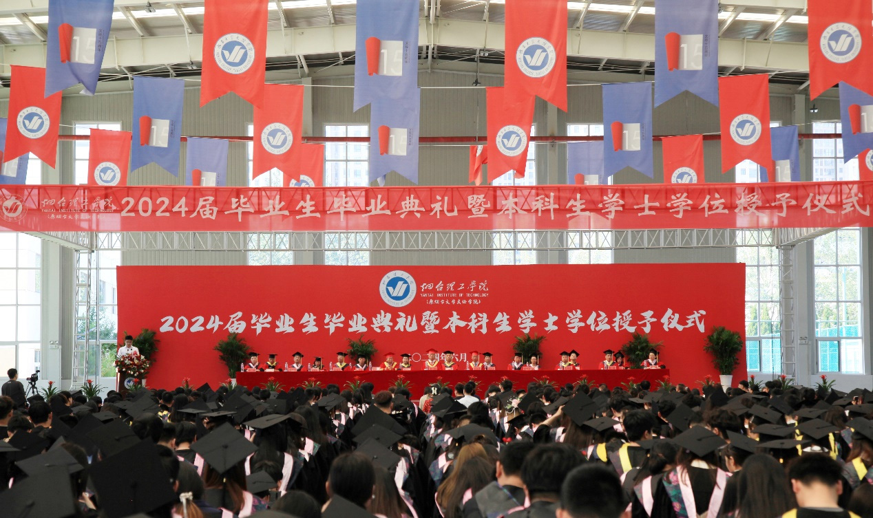2024年6月17日上午8:30,煙臺理工學院2024屆畢業生畢業典禮暨本科生學士學位授予儀式在文體中心隆重召開。