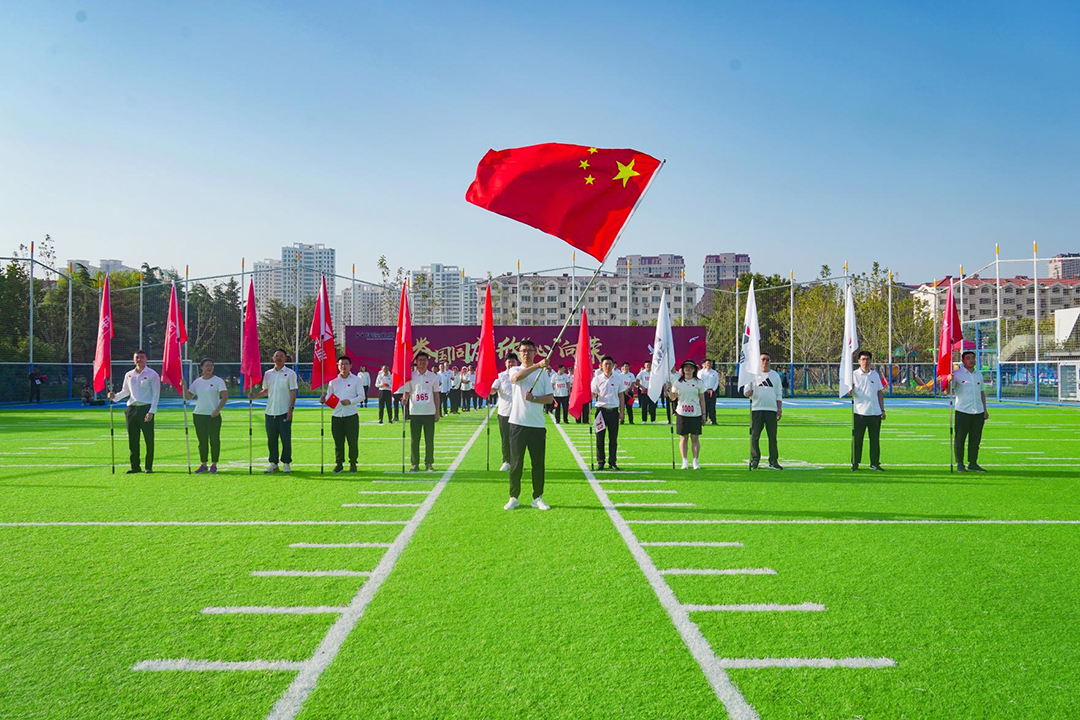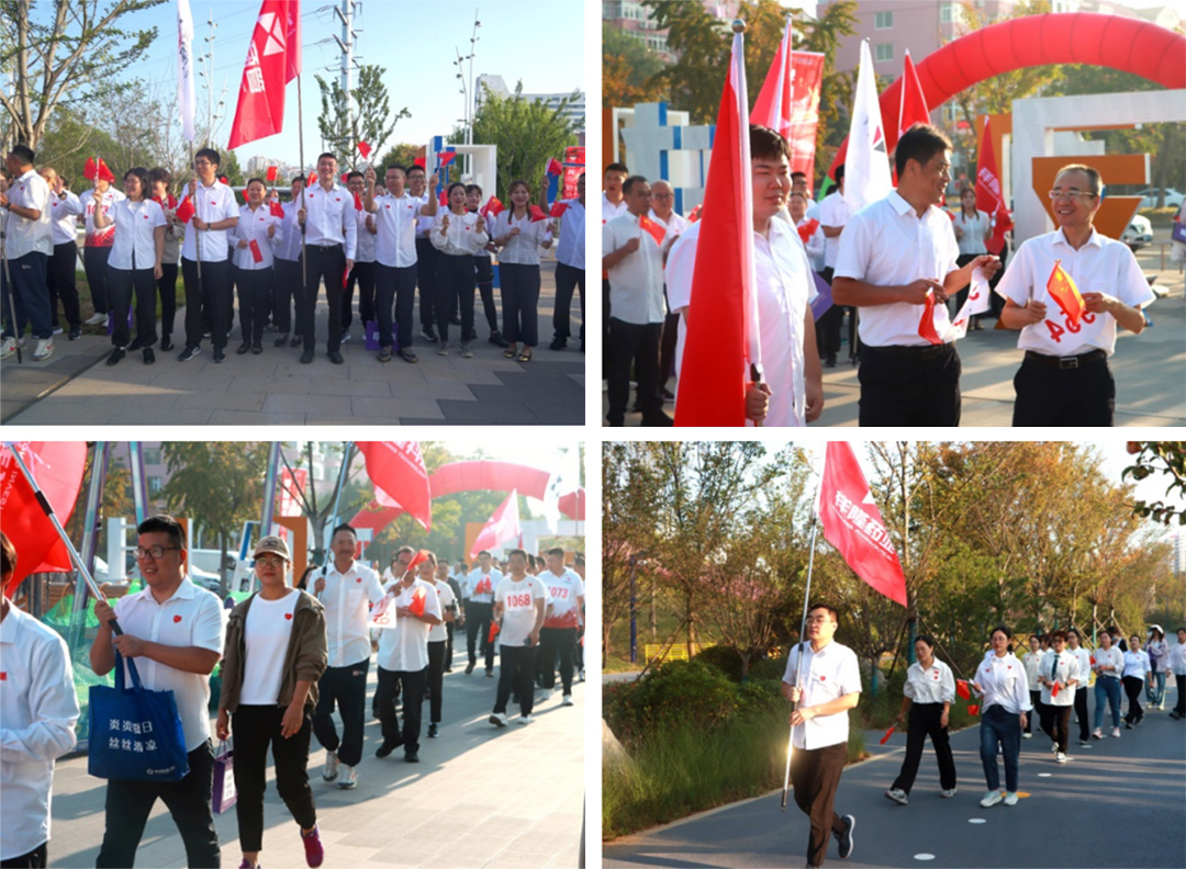 7時許,鳳凰湖公園東門已是人聲鼎沸,來自集團各產業的參賽者們身著統一服裝,精神抖擻地集結。現場氣氛熱烈,國旗、司旗交相輝映、迎風飄揚,員工精神飽滿,斗志昂揚,現場洋溢著濃厚的節日氛圍。