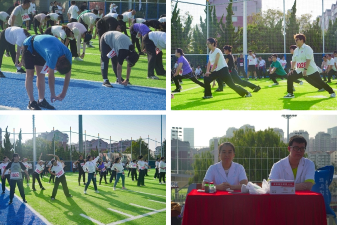在煙臺理工學院教練老師的帶領下,各位參賽選手完成熱身活動后陸續前往起跑點做準備。為保障賽事活動順利進行,跑道終點設立了固定醫療站、補給站,沿途設置流動補給站。